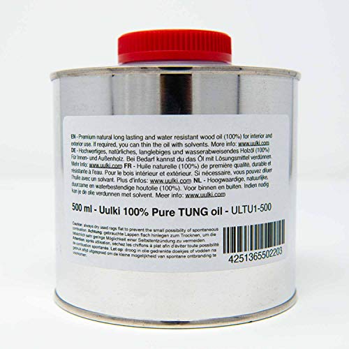 Maakt hout waterafstotend. Is ook een zeer slijtvaste olie die het hout donkerder maakt. 500 ml tungolie is geschikt om ca. 10 m² houtoppervlak te behandelen.