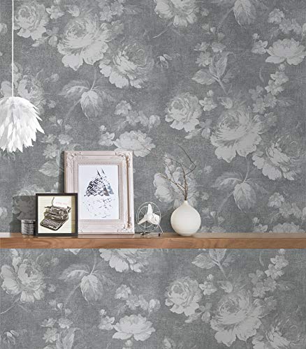 Specification: A.S. Création Vliesbehang Secret Garden behang met romantische rozen bloemen 10,05 m x 0,53 m grijs Made in Germany…