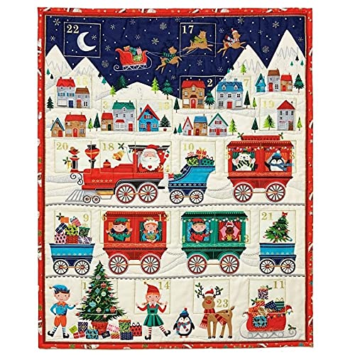 Specification: Plush Addict Kerst 2021 Adventskalender stoffen paneel – Santa Express Metallic – 60cm paneel