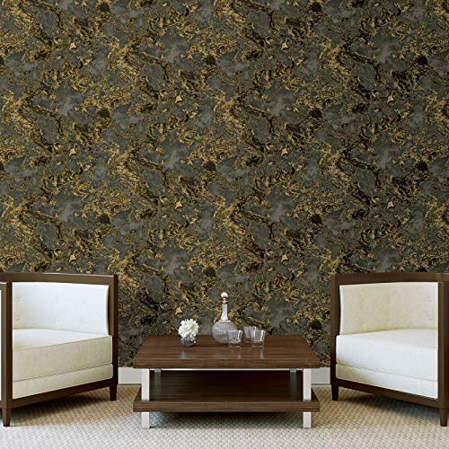 Dit prachtige Liquid Marble behang zou een stijlvol statement in uw huis maken. Het ontwerp heeft een marmeren wervelpatroon in tinten donker houtskoolgrijs, goud en zwart met een matte gladde afwerking, geaccentueerd met glitter highlights in reliëf en metallic gouden elementen om het ontwerp te verbeteren. Eenvoudig aan te brengen, dit behang van hoge kwaliteit ziet er prachtig uit wanneer het wordt gebruikt om een hele kamer of zou het ideale brandpunt zijn voor een feature muur.