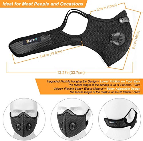 LONGER SERVICE Life: Inclusief vervangende filters verlengen de levensduur van het stofmasker; Masker is wasbaar met de hand of wasmachine om het gemakkelijk schoon te houden; 1 Jaar garantie door AstroAI