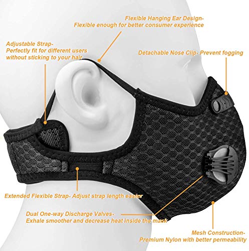 COMFORTABLE DESIGN: Zacht neuskussen op filters en verstelbare snap-on neusclip zorgen voor een betere pasvorm; Flexibele oorlus vermindert wrijven op oren; Vervangbaar filter verhoogt gebruiksgemak
