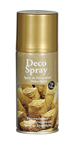 Gouden spuitbus met 150 ml inhoud, ideaal voor gebruik thuis met een sjabloon met kerstmotieven op de ramen of voor het beschilderen van dennenappels en takken om te decoreren.