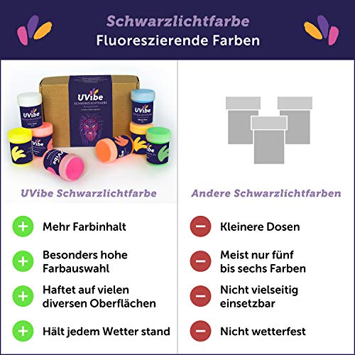 Specification: UVIBE Fluorescerende blacklight kleur – 8x opvallende neonverf voor muren, kunst en nog veel meer Made in Germany – dag…
