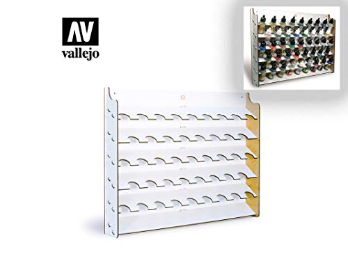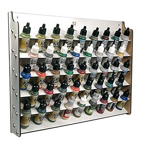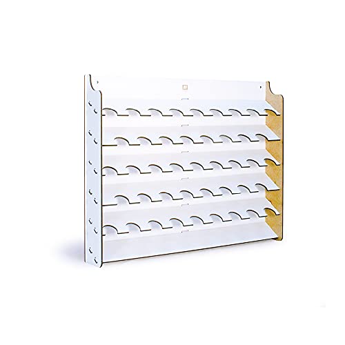 Verfstandaard voor wandmontage, voor verf, 17 ml, biedt ruimte voor 43 flesjes, van gelaserd multiplex.