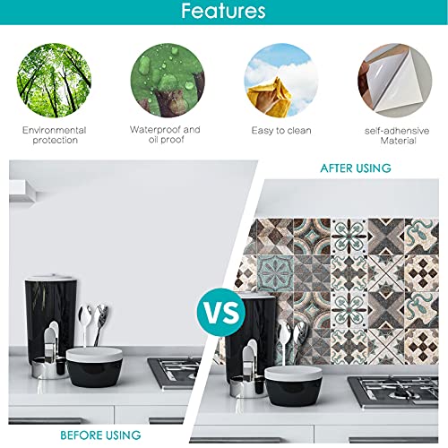 Specification: 2D-keukenstickers, 20 stuks, tegelstickers, afpellen en opplakken, wandtegels voor badkamer, keukendecoratie, retro…