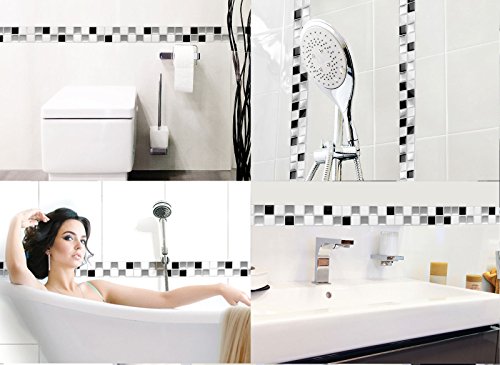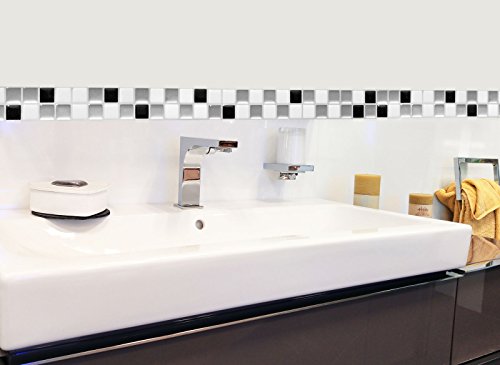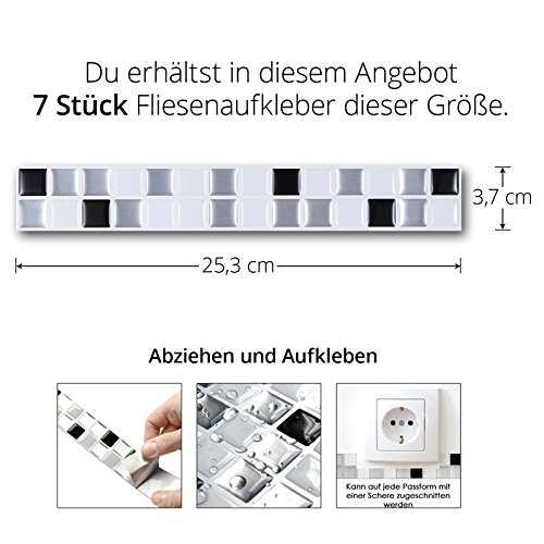 Specification: Wandora Tegelstickers, wandsticker, W1431, set van 7 stuks, 25,3 x 3,7 cm, zwart-wit, zilver, design 3 I 3D mozaïek…